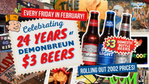 We’re celebrating 24 years on Demonbreun Street with throwback prices to 2022… $3 Domestic Bottled Beers! Every Friday in February.